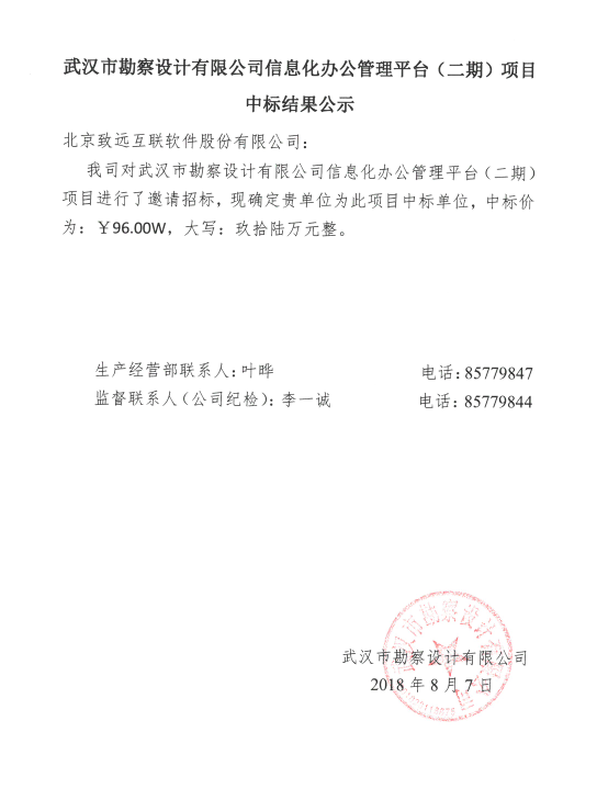武漢市勘察設計有限公司信息化辦公管理平臺(二期)項目中標結(jié)果公示